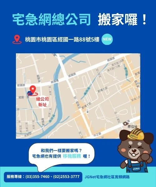 為了給大家更棒的服務體驗以及更舒適的空間,宅急網總公司與桃園營運處已經在 11月24日 搬遷至桃園經國特區。