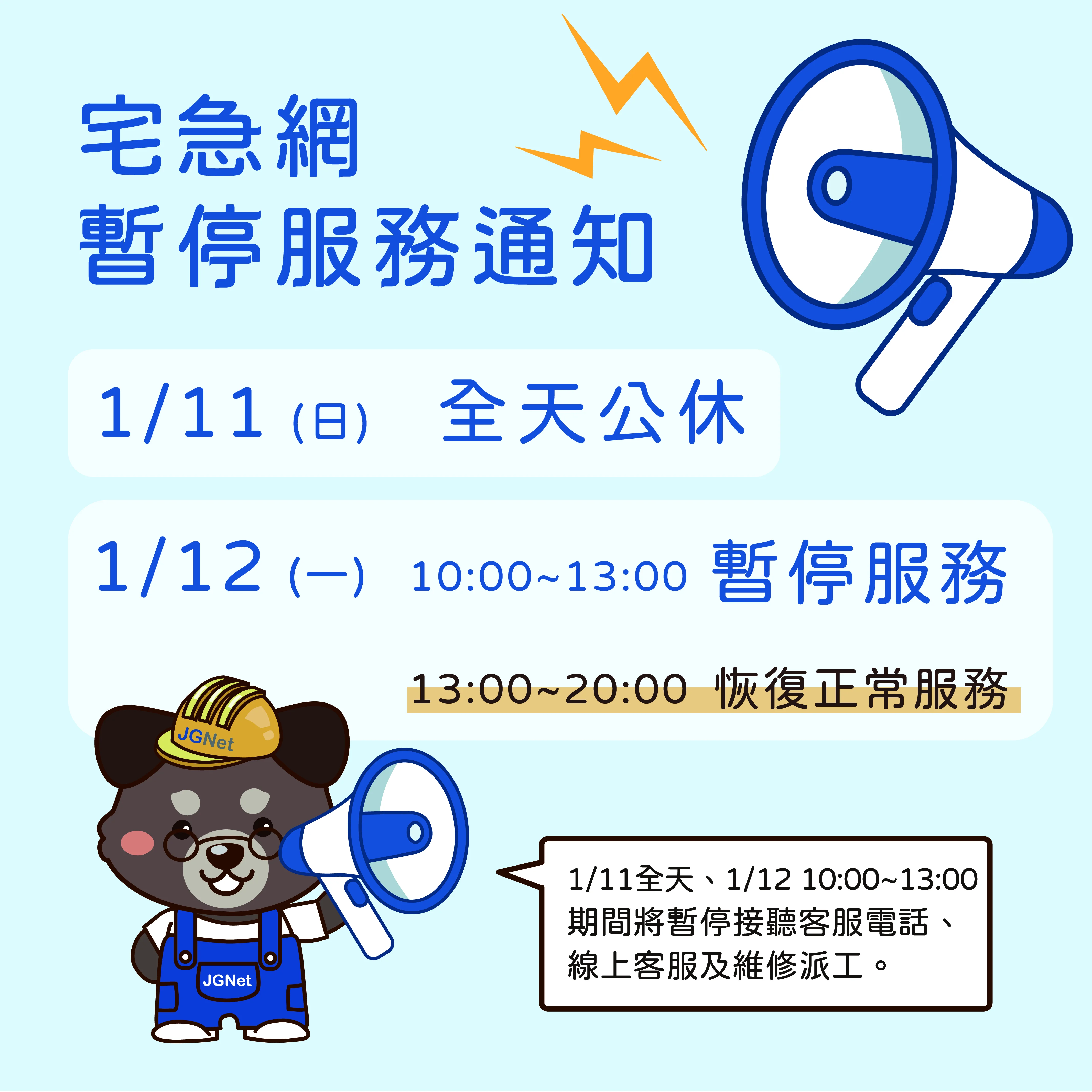 恢復營業:於隔日 1月12日(一)下午 13:00 起恢復正常服務。